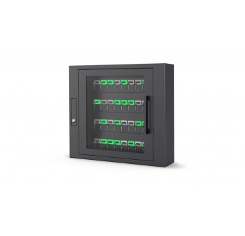 Depozytor kluczy bez panelu sterującego; wersja zredukowana do 24 slotów; 24 breloki RFID do samodzielnego zespolenia z kluczem; drzwi przeszklone; wymaga podłączenia do depozytora RKD32-SE