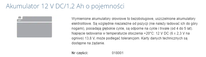 Akumulator 1,2Ah/12V, certyfikat VdS