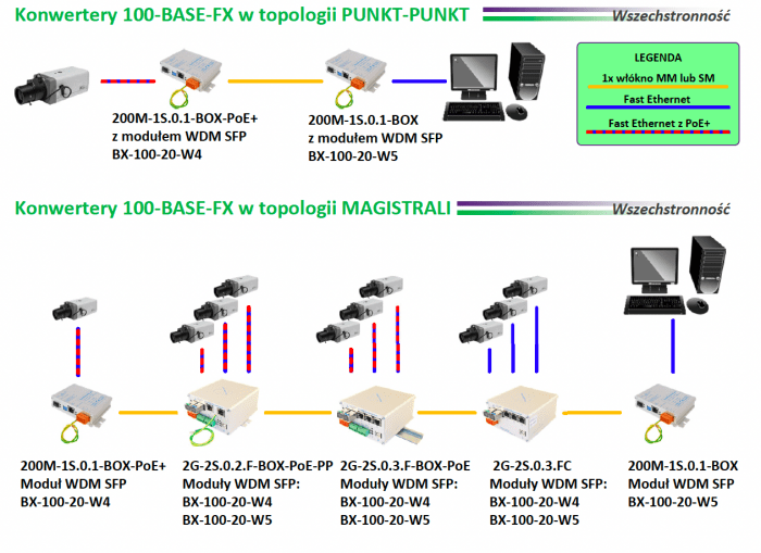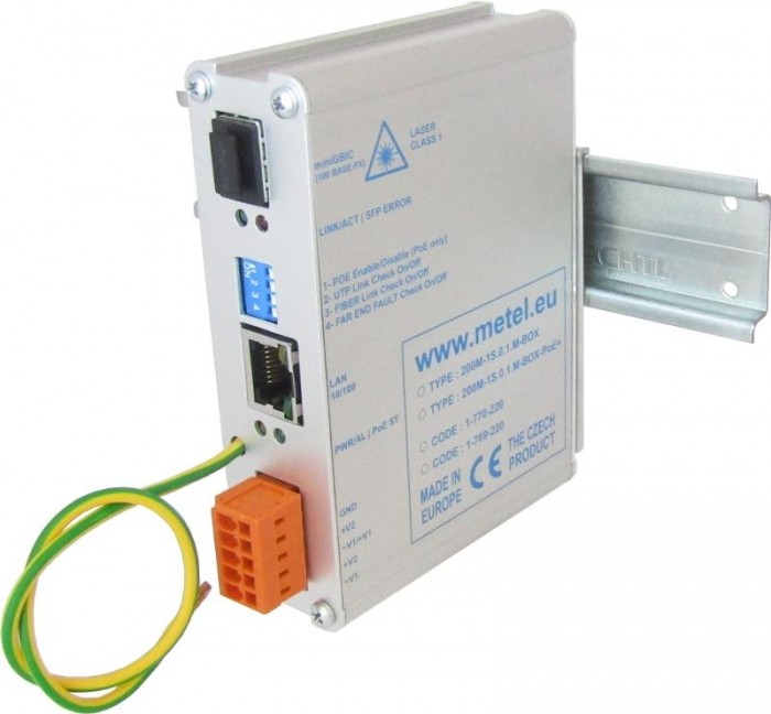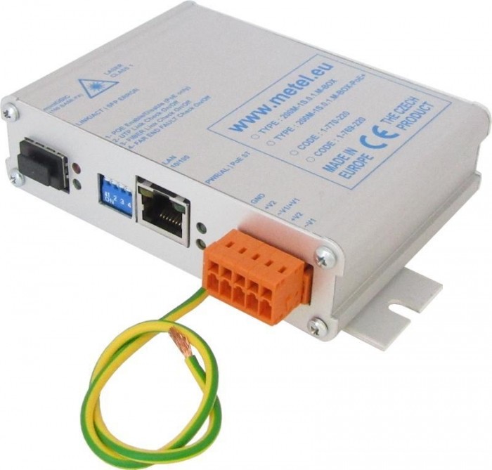 200M-1S.0.1-BOX-PoE+ to przemysłowy konwerter mediów umożliwiający niezawodną konwersję sygnału Ethernet 100Base-TX na światłowód 100Base-FX. Urządzenie wyposażone jest w port SFP oraz obsługę PoE+ o mocy do 25,5 W, co pozwala na zasilanie urządzeń końcowych. Dzięki szerokiemu zakresowi temperatur pracy i wysokiej odporności na przepięcia doskonale sprawdza się w wymagających środowiskach przemysłowych.