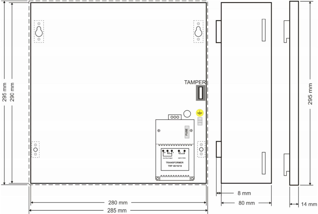 Obudowa 7/TRP40/DSPR 280x290x80+8, TRP 40VA/16V/18V, 7Ah