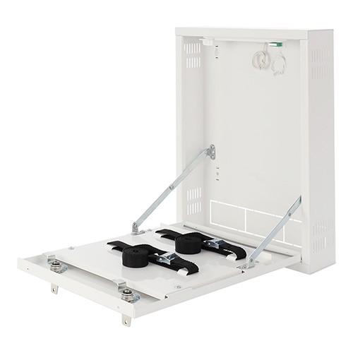 AWO528W to solidna, pionowa obudowa wewnętrzna przeznaczona do zabezpieczania rejestratorów DVR/MINI, zaprojektowana z myślą o spełnieniu wymagań ochrony danych osobowych (RODO). Konstrukcja umożliwia bezpieczne przechowywanie rejestratora, chroniąc go przed niepowołanym dostępem oraz kradzieżą. Dzięki niewielkiej głębokości i pionowemu montażowi obudowa doskonale sprawdza się w miejscach, gdzie nie ma możliwości instalacji szaf RACK 19”. Przemyślana budowa zapewnia wygodny dostęp do urządzenia po otwarciu obudowy oraz stabilne mocowanie rejestratora za pomocą dedykowanych pasów.