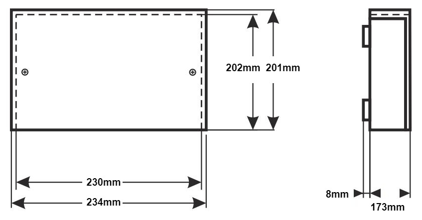 PULSAR AWO402 AK 44Ah to solidna, metalowa obudowa natynkowa przeznaczona do montażu akumulatorów o dużej pojemności w systemach zasilania i zabezpieczeń. Zaprojektowana do zastosowań wewnętrznych (IP20), umożliwia instalację jednego akumulatora 44 Ah lub 28 Ah albo pary akumulatorów 17 Ah lub 7 Ah. Zapewnia ochronę mechaniczną oraz zabezpieczenie antysabotażowe dla systemów SSWiN.
