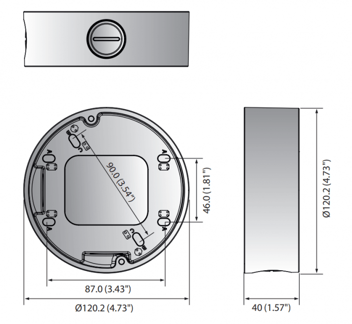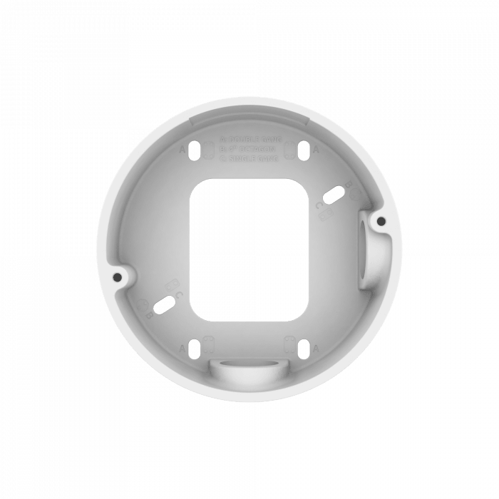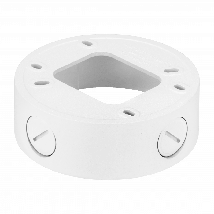 SBV-120GW to aluminiowa puszka montażowa typu dome z otworami przystosowanymi do łatwego wprowadzania kabli (knockouts). Zapewnia estetyczny i bezpieczny montaż kamer kopułkowych w trudnych warunkach zewnętrznych. Kompatybilna z wieloma modelami kamer Hanwha Vision z serii QNV.
