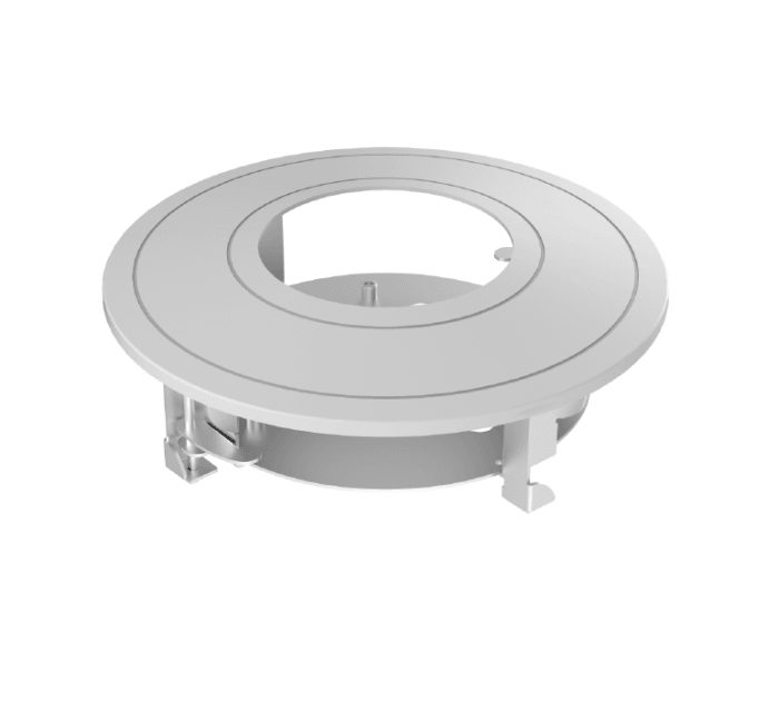Adapter montażowy TruVision TVD-VFM3 został zaprojektowany do estetycznego i bezpiecznego montażu kamer kopułowych serii S6 bezpośrednio w sufitach podwieszanych. Umożliwia instalację kamer bez szczeliny pomiędzy urządzeniem a powierzchnią sufitu, zapewniając dyskretny wygląd i stabilne mocowanie. Solidna konstrukcja ze stali i tworzywa malowanego natryskowo, w połączeniu z magnetycznym pierścieniem maskującym, gwarantuje trwałość i łatwość montażu.