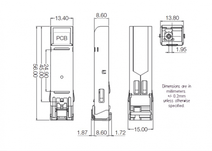 SFP-Port 100Mbit Mini-GBIC Module 'A' end - 1 Fibre - 2Km - Multi-Mode - 1310/1550nm, temp. pracy -40~+75°C