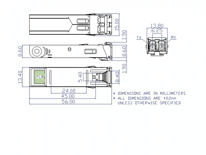 Port SFP Gigabit 2 x fiber, światłowód wielommodowy MM 850nm - 550m (1000Base-SX)