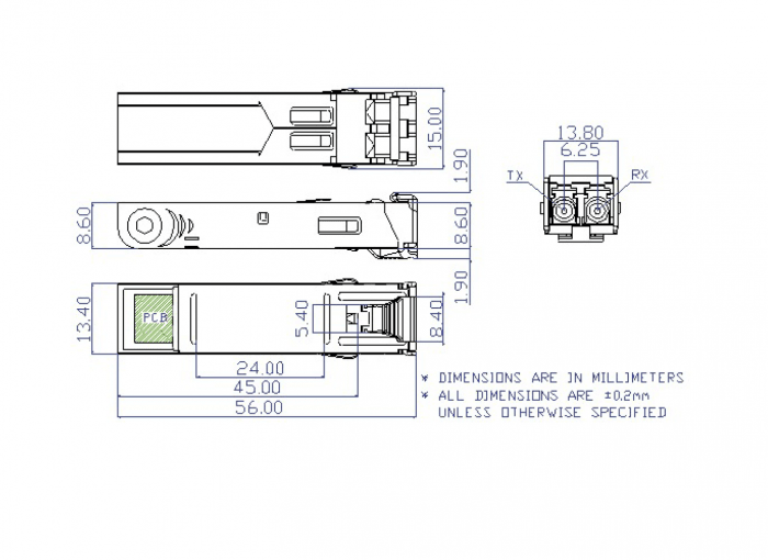 Port SFP Gigabit 2 x fiber, światłowód wielommodowy MM 1310nm - 2Km (1000BASE-SX)