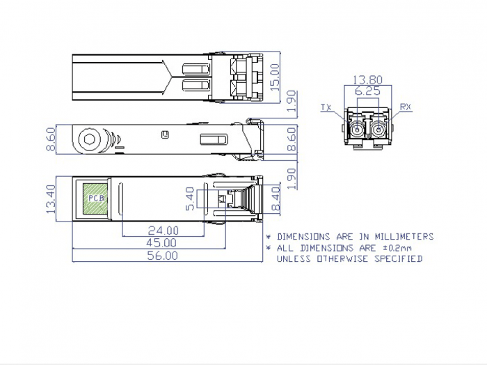 Port SFP+ 10BaseG-SR SFP+ - 2 nitki światłwodu Multimode Mode (OM3 Fiber) - zasięg 300m - okno 850nm; temp pracy 0~70℃