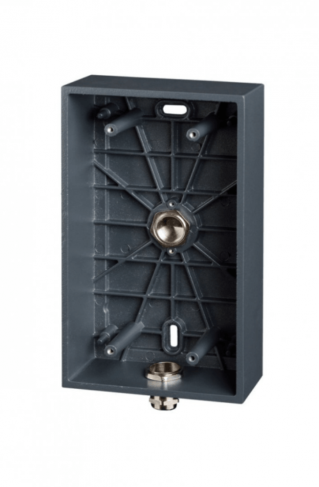 Model 2N 9153003 to metalowa puszka montażowa natynkowa (obudowa montażowa) przeznaczona do urządzeń z linii 2N Helios IP Uni. Umożliwia zamontowanie panelu wejściowego na ścianie lub innych powierzchniach, gdy montaż podtynkowy jest niepraktyczny lub niemożliwy.
