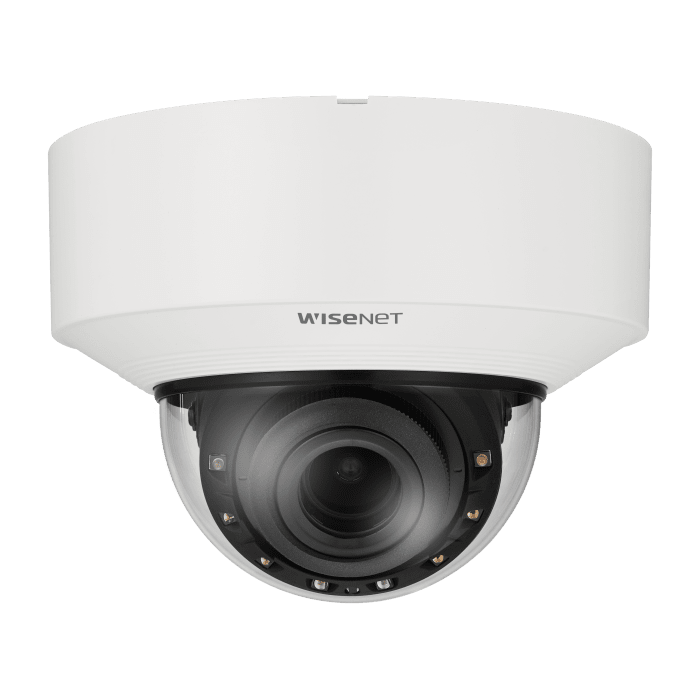 Seria X zasilana przez kamerę kopułkową Wisenet 7 AI IR do zastosowań wewnętrznych z wandalizmem, modułowa struktura X PLUS, 8 MP @30 kl./s, obiektyw zmiennoogniskowy 4,4 ~ 9,3 mm (2,1x) (112,1°~47,5°), potrójny kodek H.265/H.264/MJPEG z WiseStream II, strumieniowanie wielokrotne, WDR 120 dB, True Day & Night (ICR), diody LED IR dużej mocy z widoczną długością podczerwieni 50 m, zdarzenia analityczne oparte na silniku AI (NPU): wykrywanie obiektów (osoba/twarz/pojazd – samochód, ciężarówka, autobus, rower, motocykl/tablica rejestracyjna), IVA (wirtualna linia/obszar, wejście/wyjście, wałęsanie się, kierunek, wtargnięcie), zdarzenia analityczne: wykrywanie braku ostrości, wykrywanie ruchu, manipulacja, wykrywanie mgły, HLC, cyfrowa stabilizacja obrazu z czujnikiem żyroskopowym, dwukierunkowy dźwięk i dwa gniazda microSD/SDHC/SDXC, ONVIF S/G/T, port USB ułatwiający instalację, IP52, IK10, PoE+/12 V DC, w zestawie białe nakładki