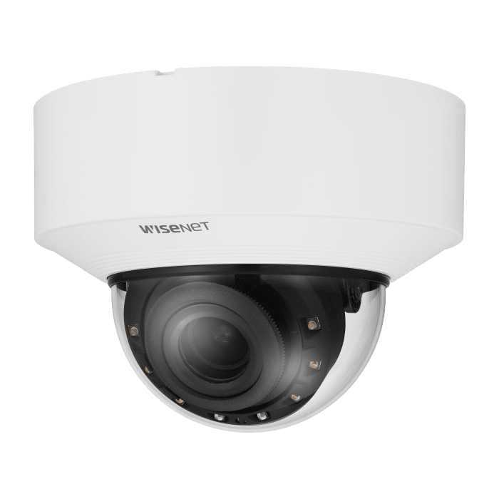 Seria X zasilana przez kamerę kopułkową Wisenet 7 AI IR do użytku wewnątrz budynków, 8 MP @30 kl./s, obiektyw zmiennoogniskowy z napędem silnikowym 4,4 ~ 9,3 mm (2,1x) (112,1°~47,5°), potrójny kodek H.265/H.264/MJPEG z WiseStream II, strumieniowanie wielokrotne, WDR 120 dB, True Day & Night (ICR), diody LED IR o dużej mocy z widoczną długością podczerwieni 40 m, zdarzenia analityczne oparte na silniku AI (NPU): wykrywanie obiektów (osoby/twarz/pojazdy – samochód, ciężarówka, autobus, rower, motocykl/tablica rejestracyjna), IVA (wirtualna linia/obszar, wejście/wyjście, wałęsanie się, kierunek, wtargnięcie), zdarzenia analityczne: wykrywanie braku ostrości, wykrywanie ruchu, manipulacja, wykrywanie mgły, HLC, cyfrowa stabilizacja obrazu z czujnikiem żyroskopowym, dwukierunkowy dźwięk i pojedynczy Gniazdo microSD/SDHC/SDXC, ONVIF S/G/T, port USB ułatwiający instalację, IP52, IK10, PoE/12 V DC, w zestawie białe nakładki