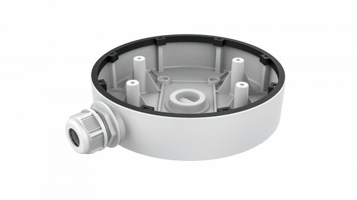TVD-BB4-W to wytrzymała, aluminiowa puszka montażowa TruVision w kolorze białym, przeznaczona do montażu zmiennoogniskowych kamer IP serii M (modele TVGP-M01-0202-DOM-W, TVGP-M01-0402-DOM-W, TVGP-M01-0802-DOM-W). Umożliwia estetyczne i bezpieczne poprowadzenie okablowania zarówno wewnątrz, jak i na zewnątrz budynków. Dzięki bocznym i dolnym wylotom kablowym zapewnia elastyczność instalacji, a jej konstrukcja umożliwia montaż wyłącznie na płaskiej powierzchni.