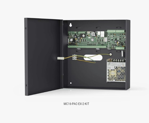 MC16-PAC-EX-2-KIT to kompletny zestaw kontroli dostępu przeznaczony do obsługi dwóch przejść dwustronnych w systemie RACS 5 v2 w wersji EX. W skład zestawu wchodzi metalowa obudowa z zasilaczem, sieciowy kontroler dostępu MC16-PAC-EX-2 oraz ekspander wejść/wyjść MCX2D w obudowie ME-40. Zestaw pozwala na pełną integrację z czytnikami różnych standardów (RS485, Wiegand, RACS CLK/DTA, OSDP) i umożliwia kompleksowe zasilanie oraz kontrolę urządzeń dostępowych przy zachowaniu wysokiego poziomu bezpieczeństwa i niezawodności.