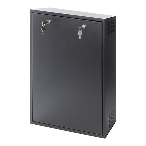 AWO530 to średniej wielkości, pionowa obudowa DVR przeznaczona do bezpiecznego montażu rejestratorów systemów monitoringu wizyjnego. Konstrukcja została dostosowana do wymagań RODO, zapewniając ochronę danych oraz samego urządzenia przed niepowołanym dostępem i kradzieżą. Dzięki pionowemu montażowi i niewielkiej głębokości obudowa idealnie sprawdza się w miejscach o ograniczonej przestrzeni, gdzie nie ma możliwości instalacji szaf RACK 19”. Solidna stalowa obudowa, podwójne zamki oraz zabezpieczenia antysabotażowe gwarantują wysoki poziom bezpieczeństwa, a praktyczna konstrukcja umożliwia wygodny dostęp do panelu przedniego rejestratora.
