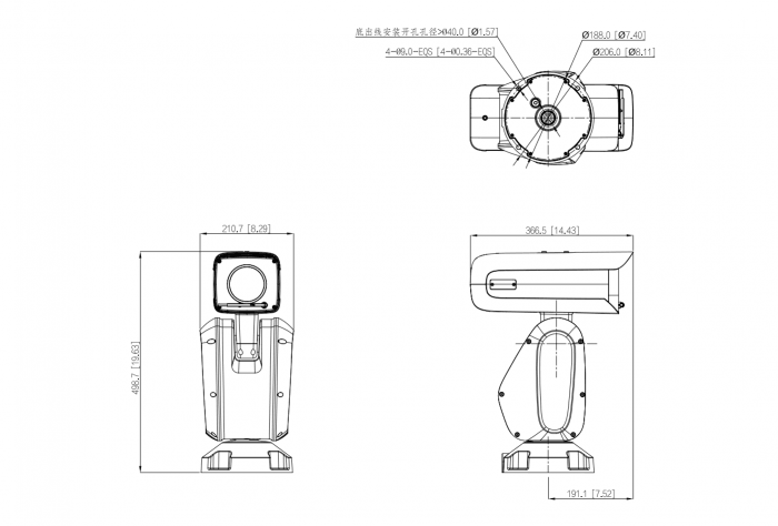 Wyposażony w układ GPU; obsługuje algorytm głębokiego uczenia się w celu zwiększenia dokładności detekcji. Metadane wideo, w tym przechwytywanie obrazu sylwetki człowieka, twarzy, pojazdu mechanicznego i niemechanicznego oraz ekstrakcja atrybutów, zliczanie pojazdów mechanicznych/niemechanicznych, wyszukiwanie raportów. Wykrywanie przeszkód; wtargnięć; przekroczenia ogrodzenia; włóczęgostwa; porzuconych/brakujących obiektów; szybkiego ruchu; parkowania; zgromadzeń ludzi; klasyfikacja alarmów dotyczących pojazdów/osób; śledzenie powiązań. 40-krotny zoom optyczny i 16-krotny zoom cyfrowy. 4 MP, przetwornik CMOS 1/1,8". Niskie natężenie oświetlenia Starlight, kolor: 0,001 luksa przy F1,4, czarno-biały: 0,0001 luksa przy F1,4, 0 luksów (włączona IR). Kodowanie H.265 w celu uzyskania transmisji niskostrumieniowej. Zasięg podczerwieni do 350 m; algorytm dopasowuje współczynnik zoomu do mocy światła podczerwonego, aby uzyskać bardziej równomierny efekt oświetlenia. Obrót: 0°–360° bez ograniczeń, pochylenie: -45°–90°, automatyczne obracanie o 180°; brak martwej strefy. Obsługuje 300 ustawień wstępnych, 8 tras i 5 wzorów. Wycieraczka 1 wejście audio i 1 wyjście audio 7 wejść alarmowych i 2 wyjścia alarmowe; obsługuje powiązanie alarmowe. IP67, 6000 V ochrona przeciwprzepięciowa; zabezpieczenie przeciwprzepięciowe; zabezpieczenie przed przepięciami. Obsługuje napięcie stałe 36 V ± Zakres napięcia zasilania 25%.