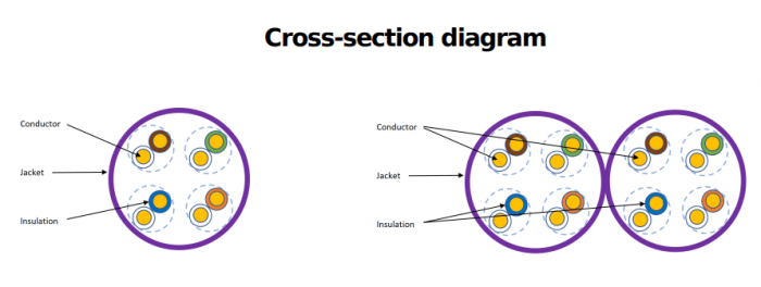 8 żył z litej miedzi (solid copper), skręconych w 4 pary
