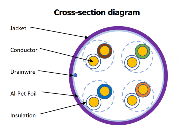 Ekranowanie: folia aluminiowa wokół całego kabla (F/UTP)