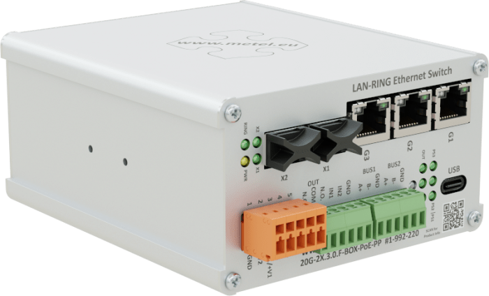 Model 20G-2X.3.0.F-BOX-PoE-PP to wysoce zaawansowany, przemysłowy przełącznik zarządzalny o kompaktowych wymiarach, zaprojektowany z myślą o serwerowniach, systemach NVR oraz punktach monitoringu wymagających najwyższego poziomu niezawodności i bezpieczeństwa. Urządzenie jest przystosowane do pracy w ekstremalnych warunkach środowiskowych, działając bezproblemowo w temperaturach od -40°C do +75°C. Przełącznik obsługuje redundantne topologie sieciowe, takie jak LAN-RING i MESH, gwarantując błyskawiczne przywrócenie łącza w czasie poniżej 30 ms. Jego ogromnym atutem są porty gigabitowe dostarczające zasilanie w standardzie PoE++ (do 95 W na port), co pozwala na bezproblemową obsługę najbardziej wymagających urządzeń końcowych. Dzięki zintegrowaniu gniazd światłowodowych 10G SFP+, bogatego zestawu złączy automatyki przemysłowej (RS485, wejścia/wyjścia cyfrowe i alarmowe) oraz wyrafinowanego systemu zarządzania zdarzeniami i cyberbezpieczeństwa, model ten stanowi niezwykle elastyczne i odporne na awarie centrum dystrybucji sieci.