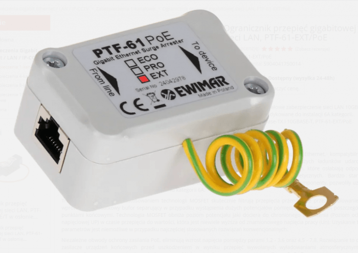 Ogranicznik przepięć gigabitowej sieci LAN EWIMAR - PTF-61-EXT/PoE