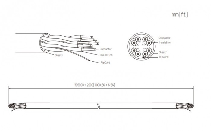 305 m (1000,66 stopy)/karton UTP CAT5E, zasilanie przez Ethernet, kompatybilny z jednym kablem. Przewód z miedzi beztlenowej o wysokiej czystości. Spersonalizowana powłoka zewnętrzna z PVC, spełniająca certyfikat CE CPR Eca potwierdzający trudnopalność. Najwyższa jakość od 10 lat.