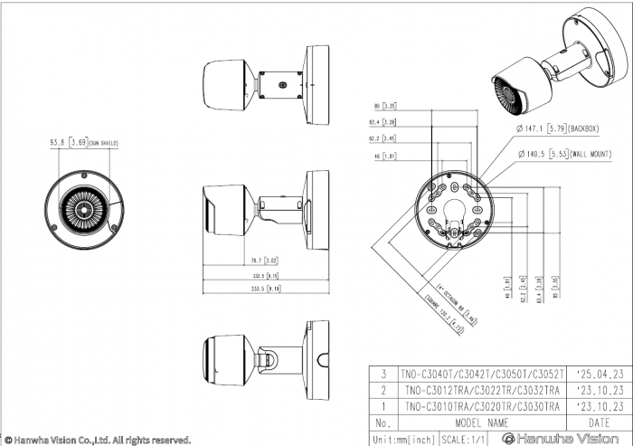 - RJ-45 (10/100/1000BASE-T), H.265/H.264/MJPEG