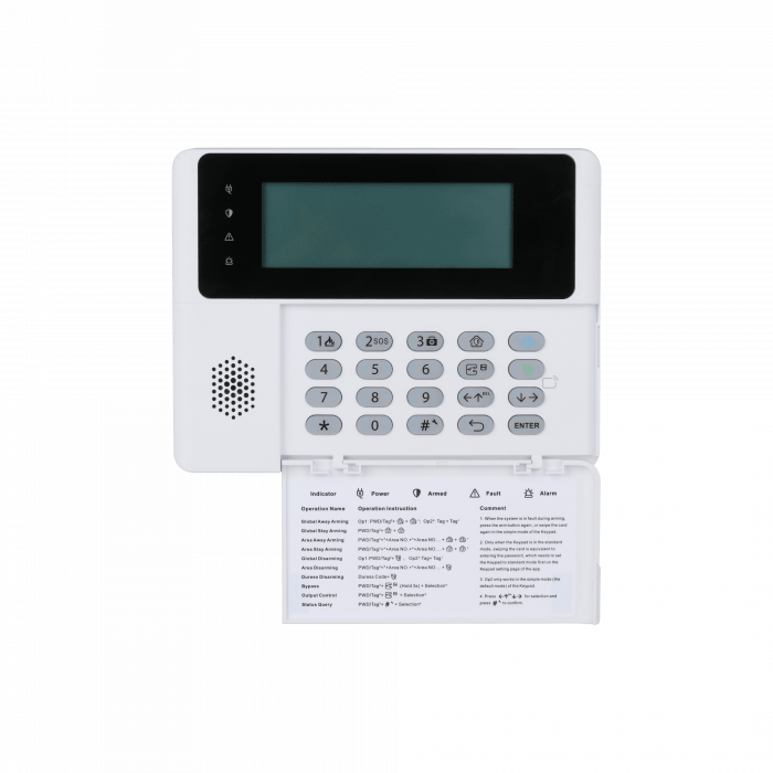 Dahua ARK30C-RW2(868) to bezprzewodowa klawiatura LCD przeznaczona do systemów alarmowych. Umożliwia sterowanie uzbrajaniem i rozbrajaniem systemu, wyzwalanie alarmów skróconych (medyczny, pożar, panika), a także odczyt kart IC / DESFire. Komunikacja odbywa się w paśmie 868 MHz w technologii dwukierunkowej z szyfrowaniem AES128, co zapewnia wysoki poziom bezpieczeństwa i zasięg do około 1600 m w otwartym terenie.