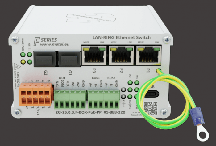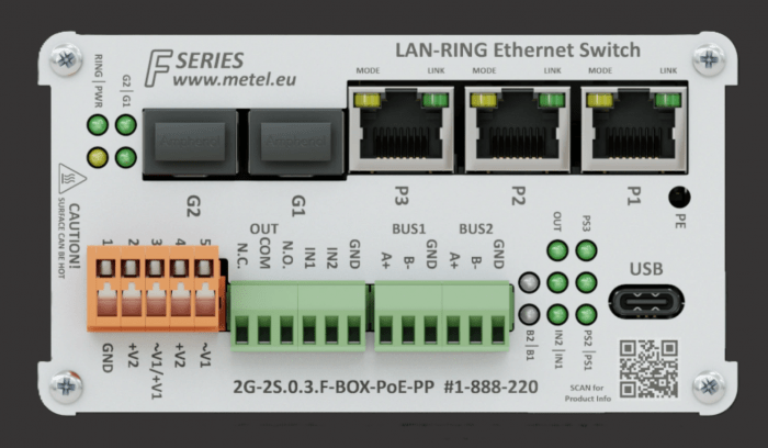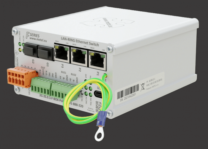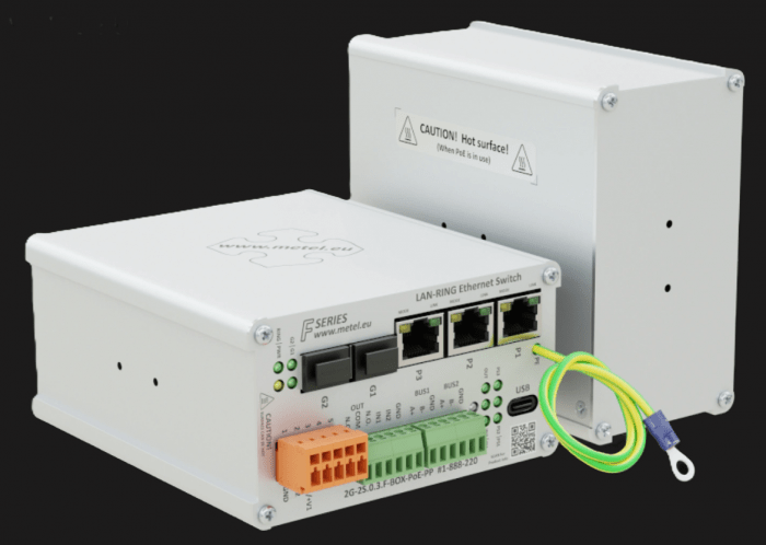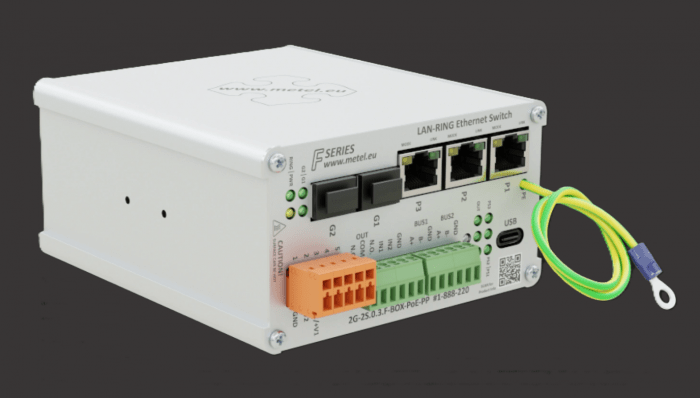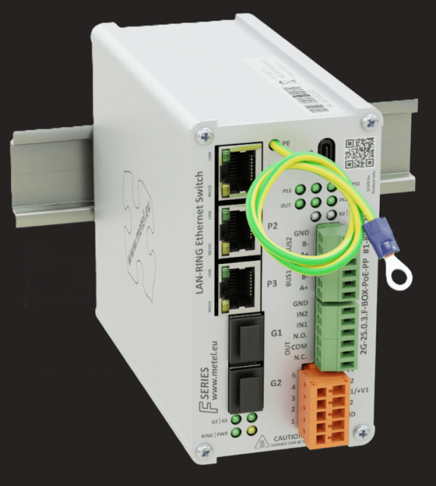 Kompaktowy przemysłowy przełącznik zarządzalny PoE++ 2G-2S.0.3.F-BOX-PoE-PP zaprojektowany do pracy w topologiach redundantnych (LAN-RING/MESH), zapewniający stabilną komunikację w wymagających środowiskach. Wyposażony w sloty SFP, porty Fast Ethernet z PoE oraz interfejsy komunikacyjne i alarmowe, umożliwia integrację z systemami automatyki i monitoringu. Dzięki wysokiej odporności na warunki środowiskowe, funkcjom zarządzania zdarzeniami oraz wsparciu dla zaawansowanych protokołów sieciowych, stanowi niezawodne rozwiązanie dla infrastruktury przemysłowej.