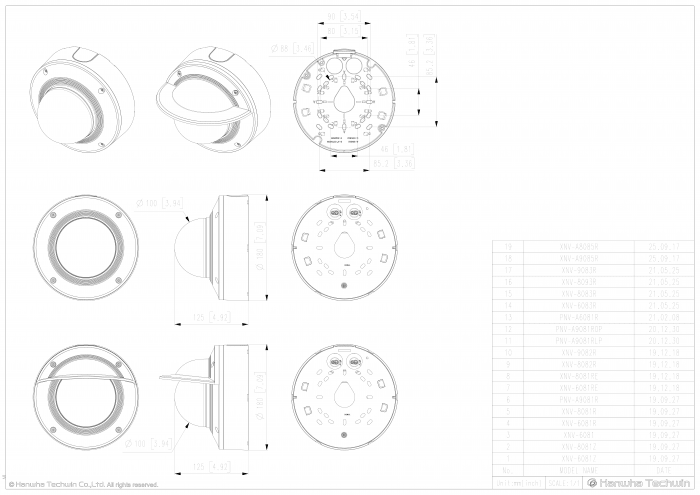 Seria X oparta na technologii Wisenet 9, konstrukcja X-Plus, zewnętrzna kamera kopułkowa AI IR, rozdzielczość 8 MP przy 30 kl./s, obiektyw zmiennoogniskowy z napędem silnikowym 4,4~9,3 mm (2,1x), (113°~47°), kodek H.265/H.264/MJPEG, widoczna długość podczerwieni 50 m (164,04 stopy), port USB-C ułatwiający instalację, wybieralne wejście mikrofonu (wejście mikrofonowe/wejście liniowe), tryb dzień i noc (ICR), extremeWDR (120 dB), kopułka kopułkowa z twardą powłoką, DIS ze wbudowanym czujnikiem żyroskopowym, funkcja przekazywania, funkcja WiseStream oparta na sztucznej inteligencji, funkcja WiseNR II (używająca silnika AI), dynamiczna maska prywatności, zdarzenia IVA oparte na silniku AI (wykrywanie ruchu i obiektów, przekroczenie linii, obszar IVA, poślizg i upadek, klasyfikacja dźwięku), sklasyfikowane typy obiektów (osoba/twarz/pojazd/tablica rejestracyjna), atrybuty obiektów (Osoba: Płeć/Kolor górnej/dolnej części ubrania/Torba, Twarz: Wiek/Płeć/Maska/Okulary, Pojazd: Typ/Kolor), Be